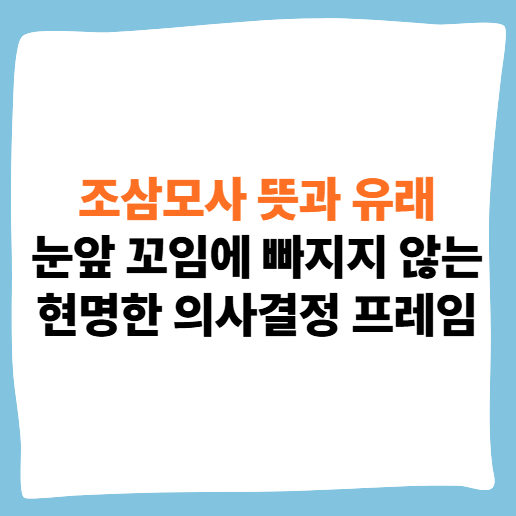 검색 의도와 연결된 다음 행동 제시: 조삼모사의 교훈을 실생활에 적용하기 위해, 연관 주제인 **'행동 경제학적 관점에서 손실 회피 성향을 극복하고 객관적으로 판단하는 5가지 방법'**을 찾아보시는 것을 추천합니다.